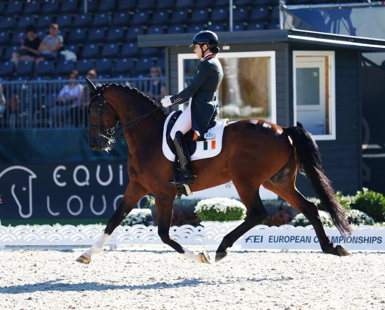 In what was undoubtedly the low point of the international season, Ireland’s hopes of qualifying a team for the 2024 Paris Olympics Games were left hanging by a thread at the FEI Dressage European Championships in Riesenbeck, Germany, in September. “Very disappointed with the final outcome” was the verdict of HSI High Performance Director for Senior Dressage, Anne Marie Dunphy. Team Ireland’s woes were apparent before the competition proper got underway. Sorrell Klatzko’s championship jinx continued with Turbo withdrawn after being held in the first horse inspection. The remaining three team riders faced an uphill task. Things took a turn for the worse when Judy Reynolds reported that Rockman Royal NG was “feeling a bit flat” having reacted to an insect bite the evening before his test. Their score of 63.401% put them behind the first Irish combination into the arena, Abi Lyle and Farrell completing on a 64.037% total.