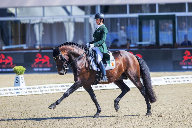 Ireland's second individual, Anna Merveldt, completed her Grand Prix test with Eleonore Higgins and Giovanna Mazza's 12-year-old Lusitano stallion Esporim. The pair did a lovely test to score 68.33% and finish in 46th place.