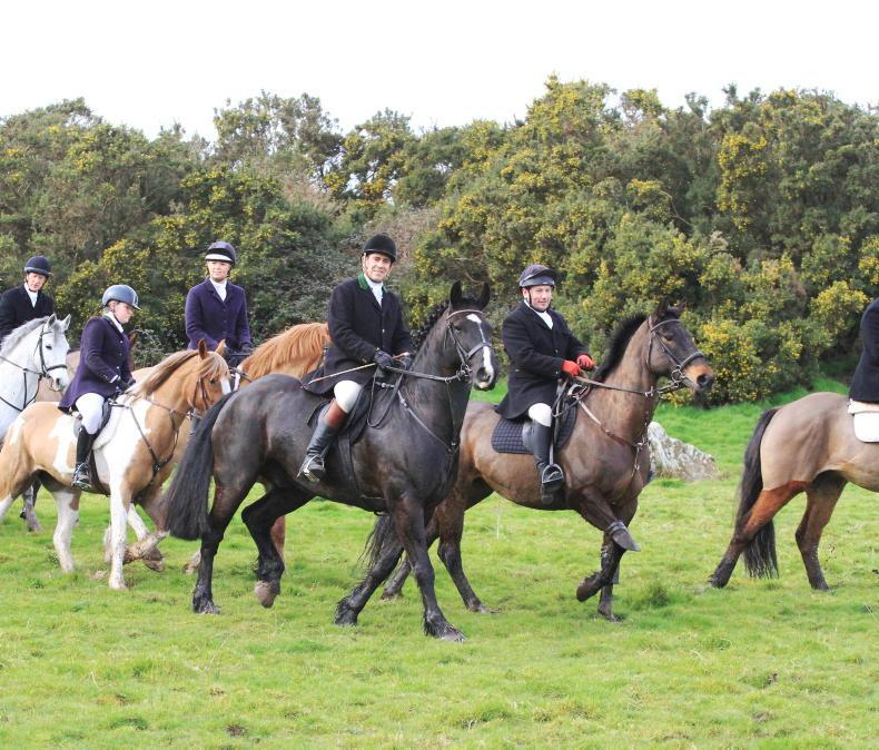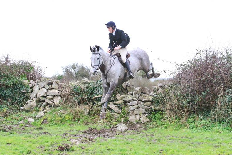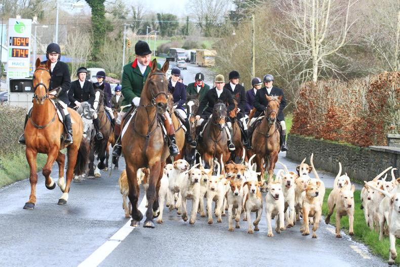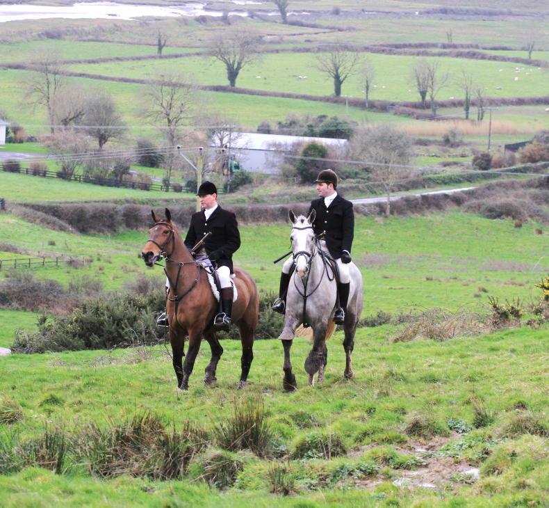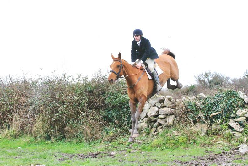 Two stalwarts of the hunt were on the missing list in Pat (Ardsolas) Hannon, now in his 70th season, with the hunt was tied up on farm duties while Brian McCarthy from Quin was nursing a broken wrist but his daughter Edwina, on her good bay, was flying the family flag. As well as hunting Edwina and her husband are successful National Hunt breeders and they bred Galvin, placed in the most recent renewal of the Cheltenham Gold Cup, ridden by Davy Russell.