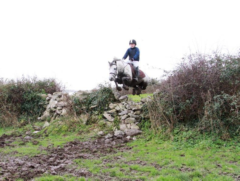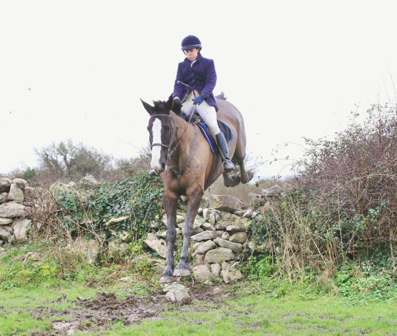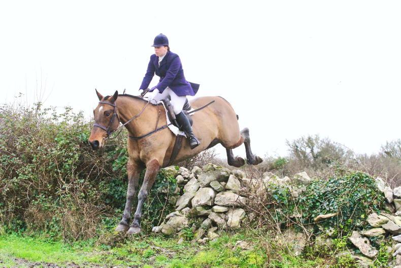 Aoibhinn Bannon jumps the wall with style while out with the Co Clare Foxhounds \ Catherine Power