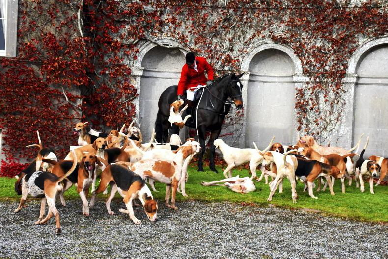Huntsman of the Meath Foxhounds John Henry with hounds at Ardbraccan House \ Noel Mullins