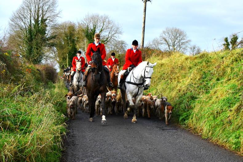 It was reassuring for the followers that there were two doctors in the field, one who specialises in the body and the other focuses on the mind, so that everyone was well and truly covered for all eventualities! Master Dr Cathal Cassidy was hunting with his son, Daniel, and fellow master, Niall O’Regan, with his daughter, Maise. It was great to meet Ethel Galligan, a daughter of the late honorary whipper-in Aidan Galligan. I remember hunting with the crack team of Aidan, huntsman Johnny Henry and Michael ‘Speedy’ O’Rourke on my hunter, Walter, from The Hill of Tara and they provided terrific sport.