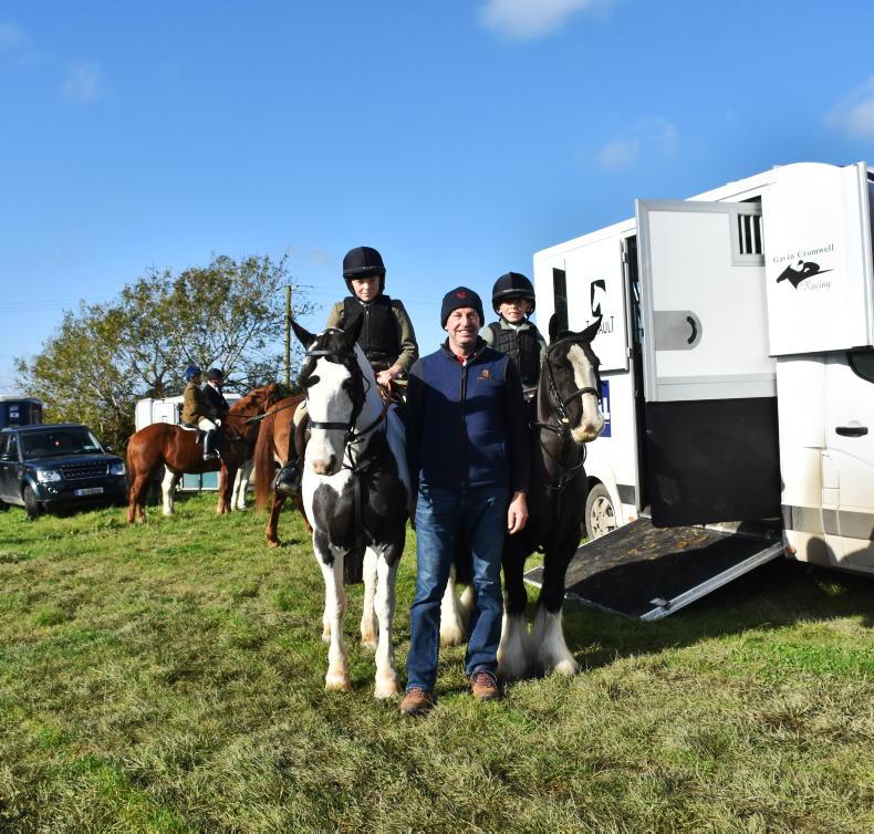 Horse trainer Gavin Cromwell with his sons Jake and Cameron at The Fingal Harriers opening meet \ Noel Mullins
