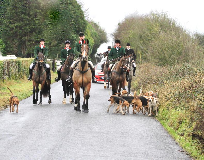 IT would be hard to find a more appropriate meet post-Christmas for the Limerick Harriers than the famous pub known as Kirby’s Hunting Lodge. Located roughly halfway between Limerick City and the small town of Bruff, it enjoys a large car park just off the main road where boxes can safely park. It has been in the Kirby family for generations and is now run by Donal Kirby and his mother Frances, and more welcoming hosts it would be hard to find.