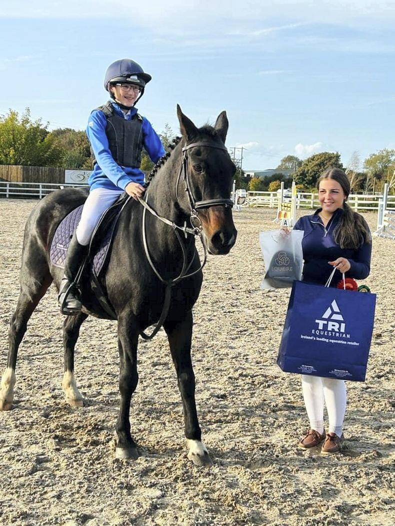 Ellie Vaughan and REC Morgano from Mountrath Community School won the Equieire turnout prize, presented on the day by Emma Keogh of Equieire