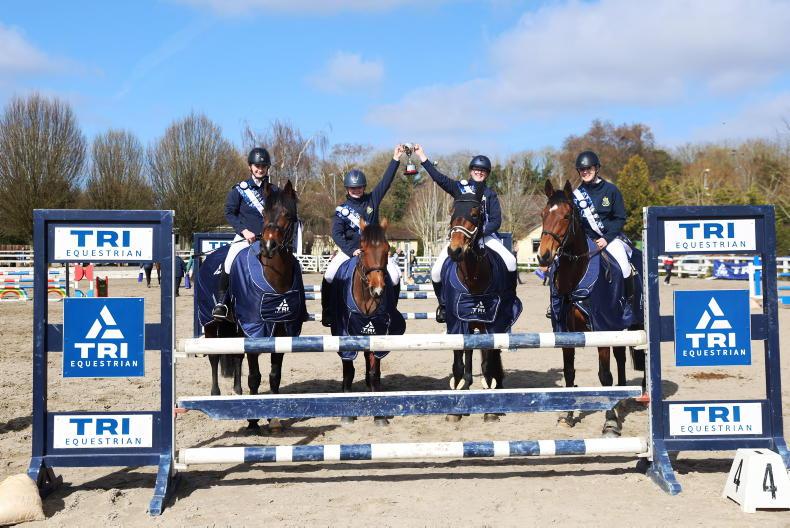 The Hornbeam Arena catered for the open classes starting with the TRI Equestrian Open Team class which saw the red ribbons and 10 league points go to local school Newbridge College ahead of Ashbourne Community College in second and Scoil Mhuire Trim in third.