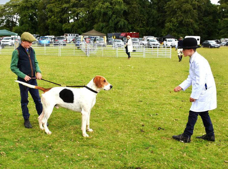 Jake Cromwell and Paddy Finnegan in the young handlers class at The National Hound Show at Stradbally Hall \ Noel Mullins