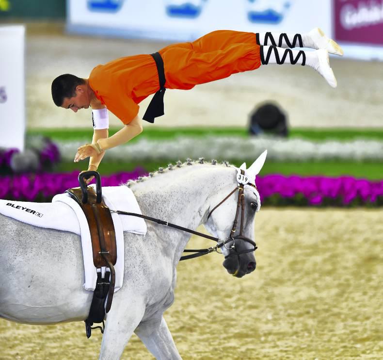Thomas Brusewitz’s tiger-stripe costume has been attracting plenty of attention and, even with an early mistake, the younger of the Brusewitz brothers went well ahead with 8.563 for his performance.