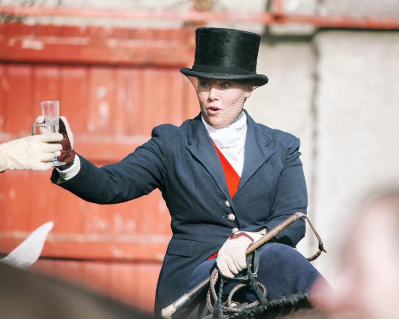 Cheers! Kim Ronan out hunting with the Tipperary Foxhounds for their side saddle meet at Grove Estate, Fethard (Photo: Sagittarian Photography)