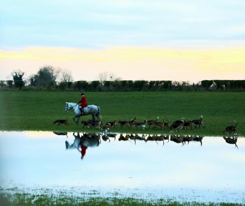 The Laois Huntsman Dermot Hanniffy heading home after a good hunting at their meet in Clough Ballacolla (Photo: Jim Fennelly)