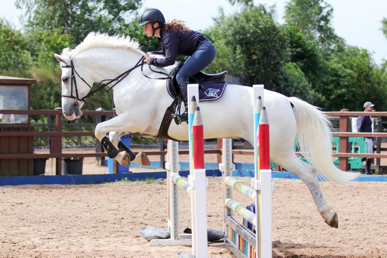 Hannah Blakely and Lougherne Kingfisher, winners of the NIHB 7 and 8 year-old SJ Challenge at The Meadows \ Tori O'Connor Photography