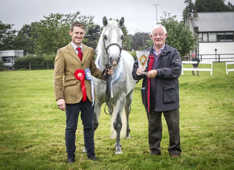 Alicia Devlin Byrne and Blackwood Fernando win the working Hunter Championship at the Midland Connemara Breeders' Show, pictured with judge Rosaleen Barry \ Rynes Walker