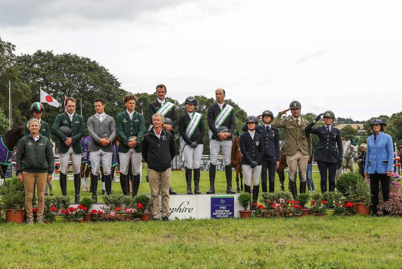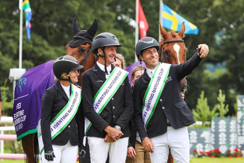 Camphire winners: on the podium of the FEI Nations Cup, sponsored by Cahervillahow, at the Sema Lease Camphire Internationals Horse Trials with winners New Zealand, runners-up Ireland and Italy \ Courtesy of Camphire International