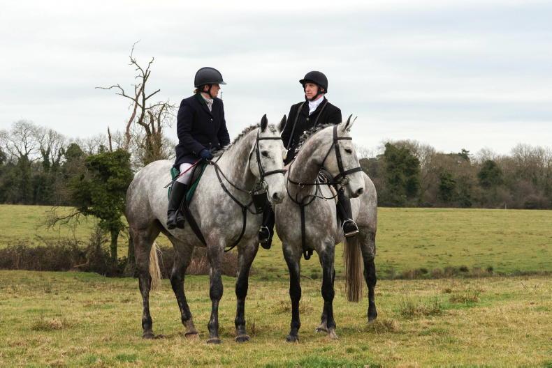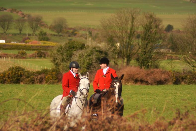 Over from the UK: Tom and Maria McNamara, with 12 visitors out on their hirelings from the Ledbury and the Belvoir, at the Grallagh Harriers meet from Cartymore Cross \ Noel Mullins