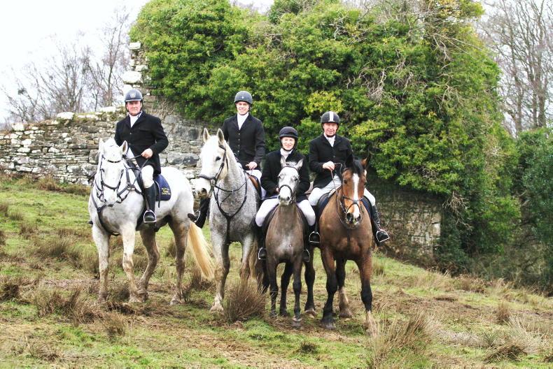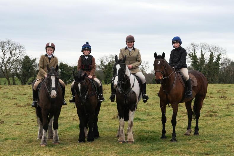 The younger generation out with the Ballymacad Foxhounds at their meet from Kilskyre - Aoibheann Donohue, Sarah Browne, Ciara O'Brien and Katie Murray \ Mark Wiseman