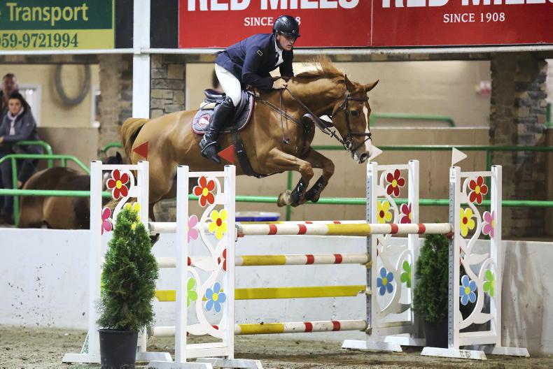 Cian Harrison and Florida Springs, winners of the 1.25m speed at the Cavan Indoor Championships \ Laurence Dunne Jumpinaction.net