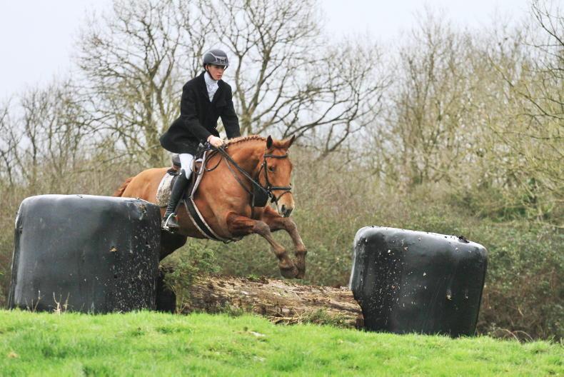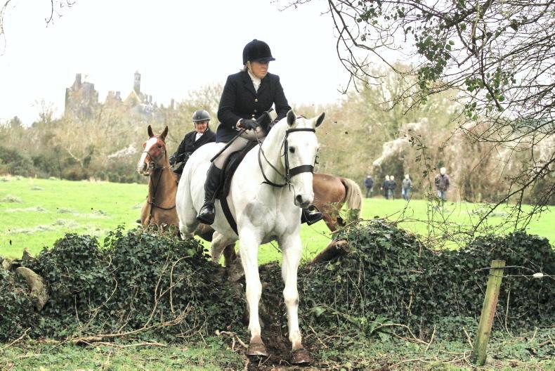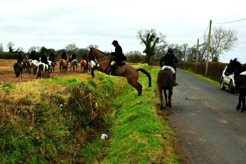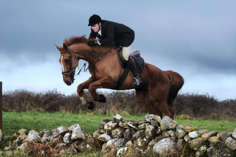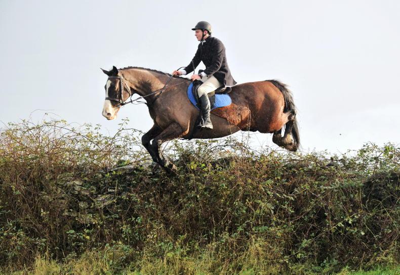 Raphael Lee of the North Galway Foxhounds making it look easy over a hedge in Shrule \ Maura Morrin