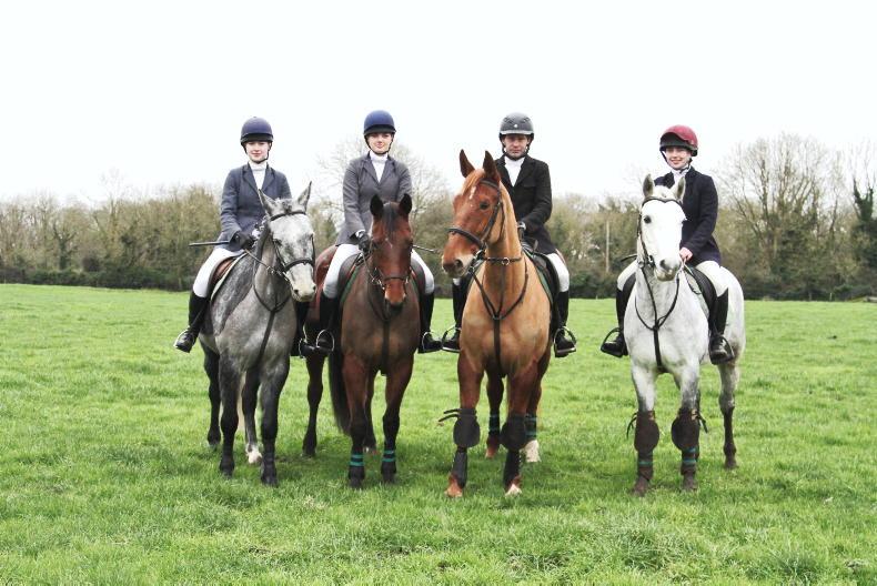 Amanda Bonham and Hollie and Henry Curran and Charlie Fox at the Lakeland Foot Beagles at the lawn meet at Jan Farrell’s Farm at Crossakiel \ Noel Mullins