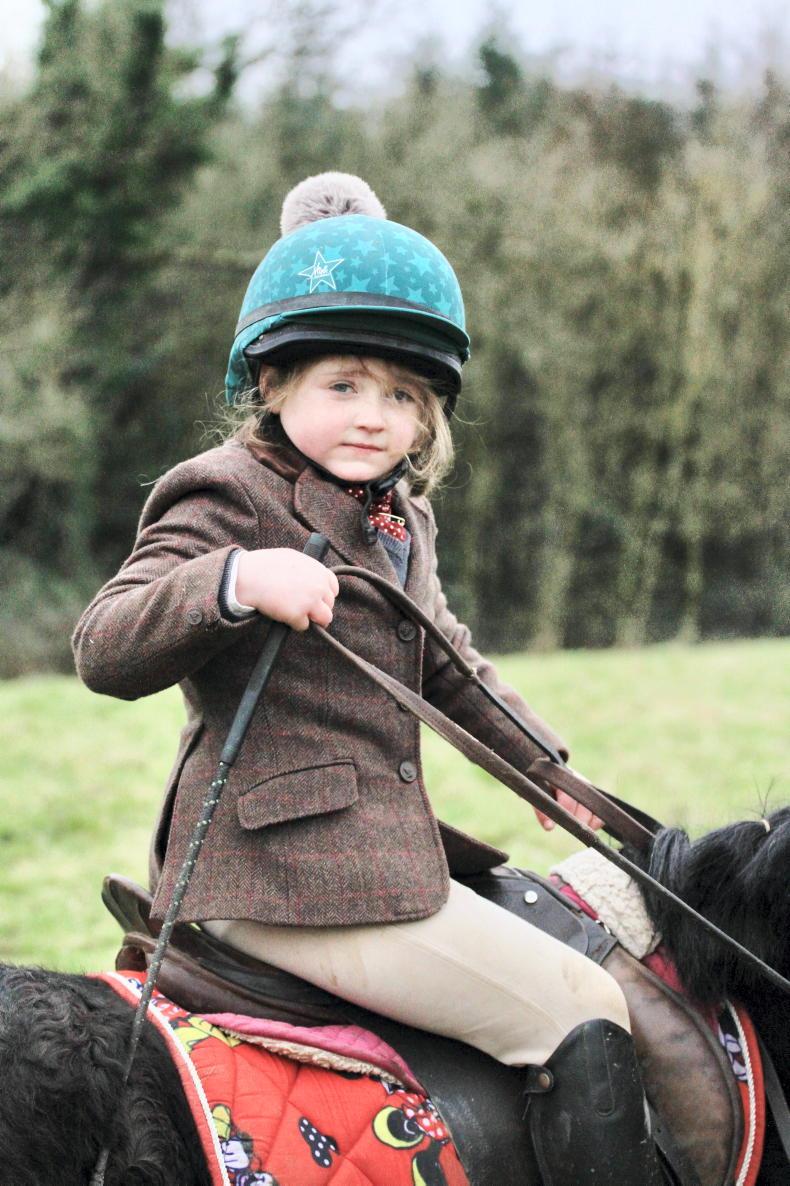 Youngest rider on the day at Stonehall Harriers meet at Shanpallas Castle was six-year-old Jessica Cregan \ Catherine Power