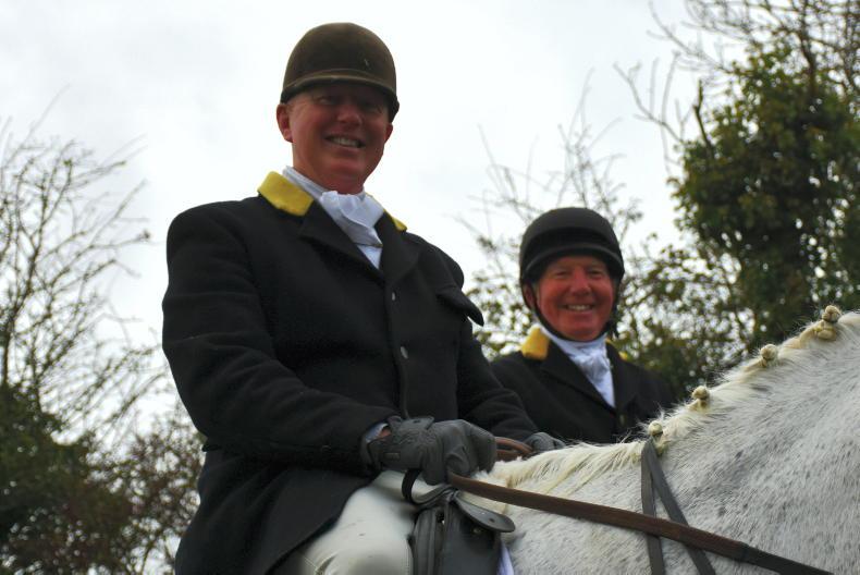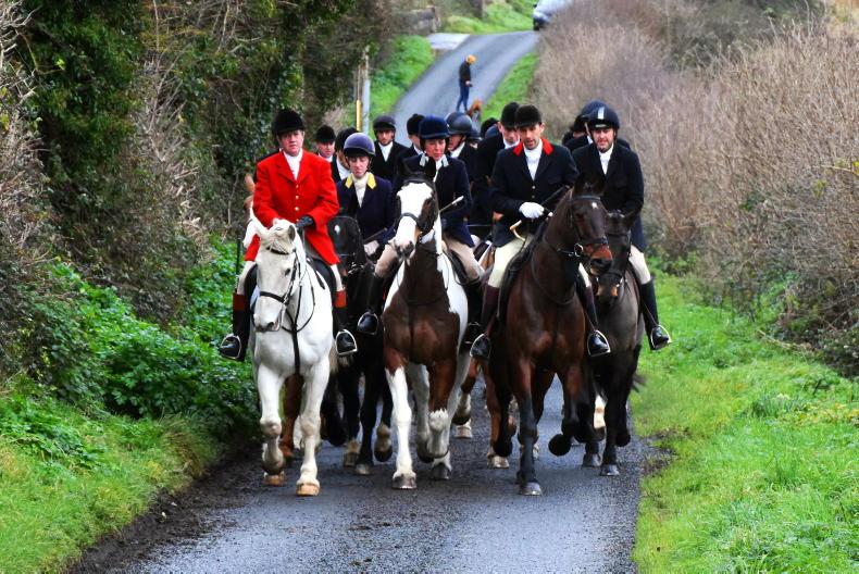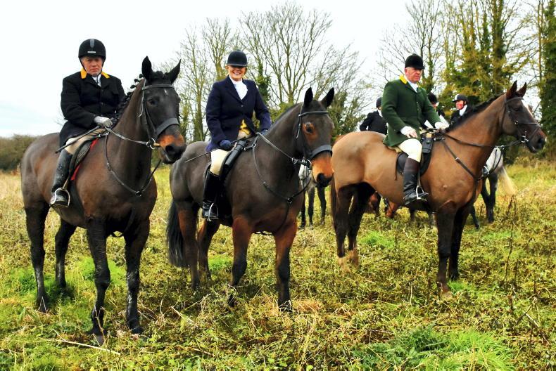 Joint master Timmy Carberry, with Susan Oakes and former master David Baker and the followers at The Ward Union Staghounds meet at The Bog of the Ring \ Noel Mullins