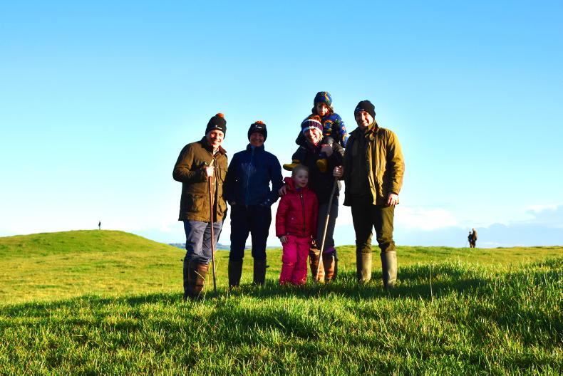 Nikki Potterton, Jill Revill and Sally, Geoff, Poppy and Sam Frawley at the Lakeland Foot Beagles lawn meet at Jan Farrell’s Farm at Crossakiel \ Noel Mullins