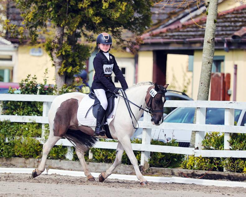 Clara Nyhan and her lovely piebald mare Molly Dot Com represented the Carbery Branch to win the Under 10s’ section at the Irish Pony Club national dressage day at CoilÓg \ Mel Doyle