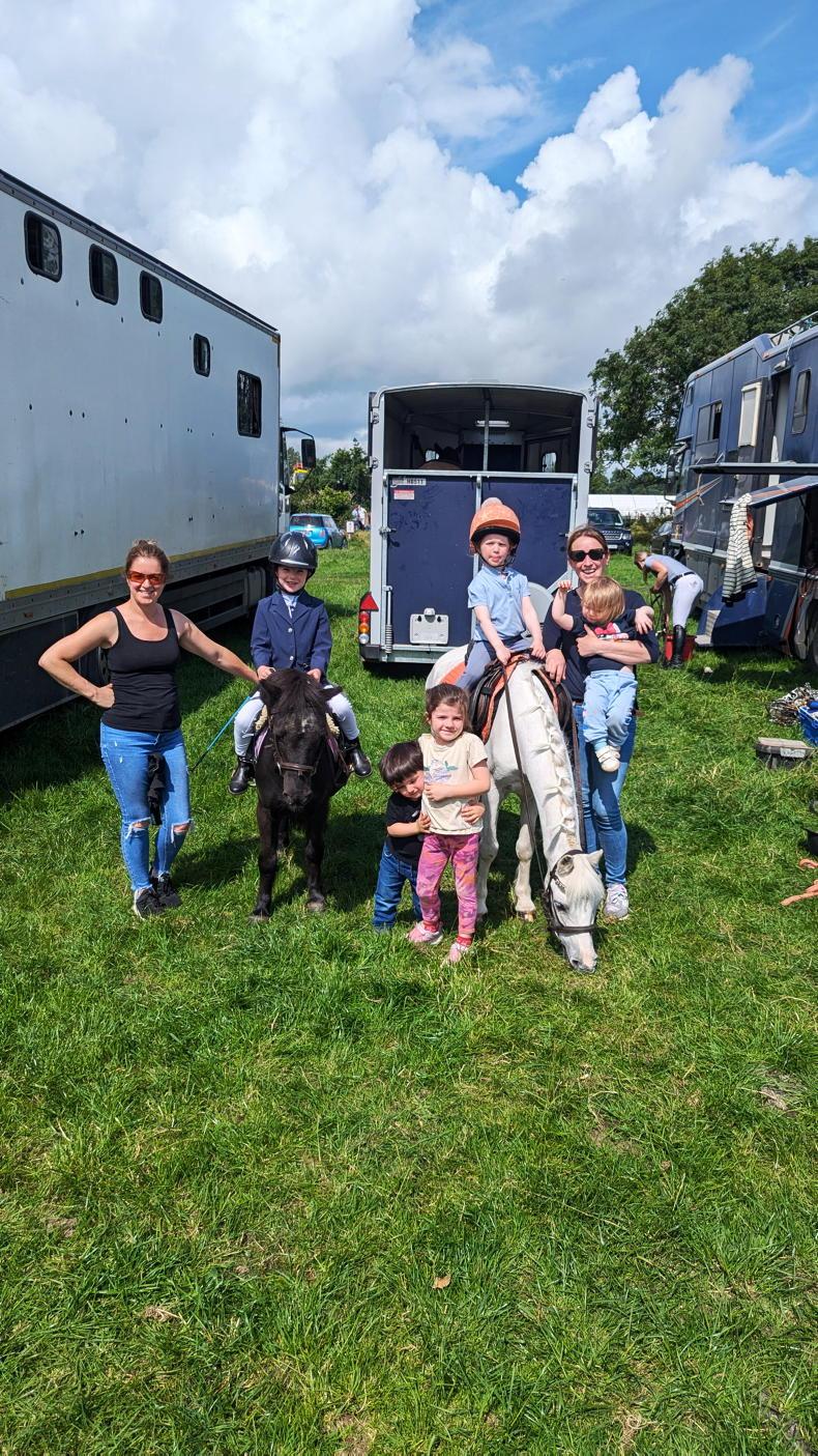 Louise Beecher, Anna Beecher on Smurf, Dan Beecher, Jess Beecher, Marie-Anne O'Donnell on Cleo, Mairéad and Maria O'Donnell at Dungarvan show