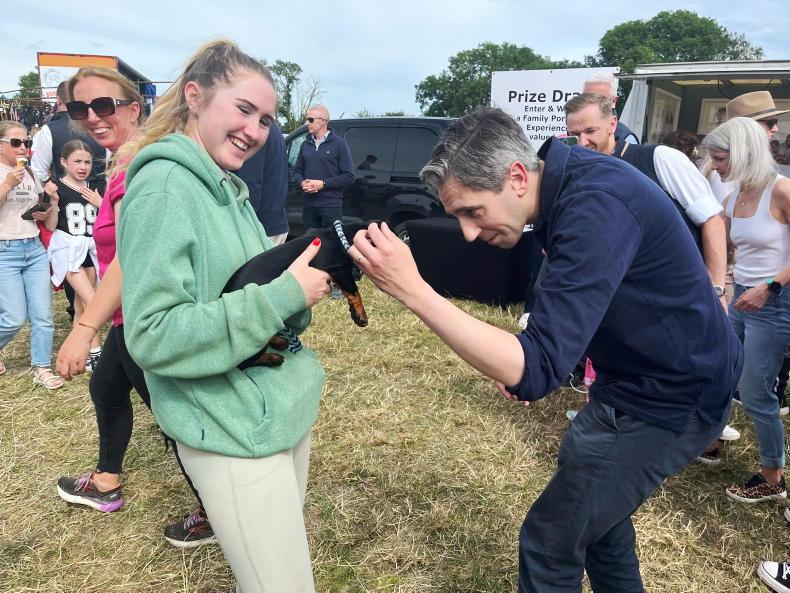Jess Widger and Freddie the dachshund pup meet An Taoiseach Simon Harris at Dungarvan Show