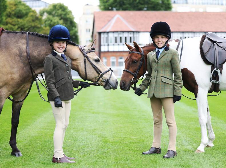 Cara O’Connor (7) with her pony Rathcoole Rupert with Scott Doran and his pony Hopgarden Photograph at the launch of the 2024 RDS Dublin Horse Show at the RDS on Tuesday \ Leon Farrell / Photocall Ireland