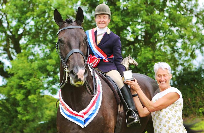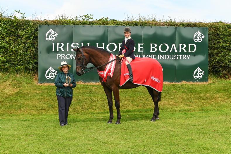 Nicola Perrin and Solsboro Zeus, winner of the Ridden Hunter Champion of Champions at the Wicklow Hunt Show. Pictured with Alison Corbally, director general of the Irish Horse Board \ Louise O'Brien Photography