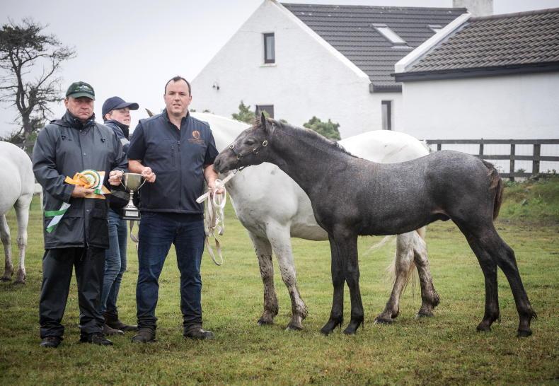 Eoghan and Joseph McCann's Camillia Paul wins the Foal Championship at Cashel Pony Show. Pictured with Judge John Harte jnr, Eoghan and Joe McCann \ Rynes Walker