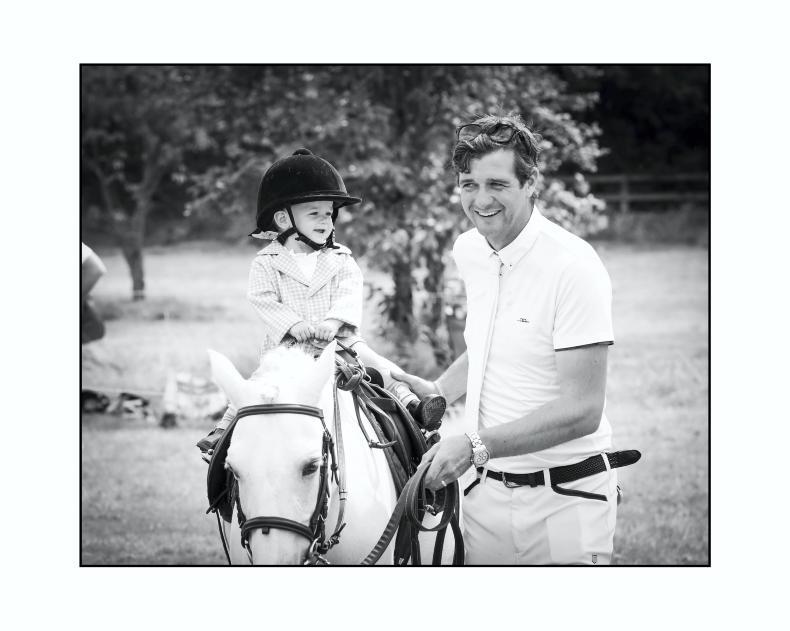 Show jumper Vincent Byrne and daughter Evelyn riding Lady at the Kildare/North Leinster IPS show at Tattersalls \ John O'Carroll Equine Photography