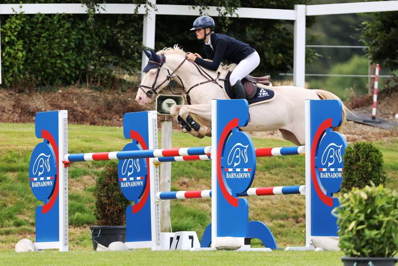 Charlotte McCracken and Cwmello Champagne Charlie, winners of the Ballinroe Pony Premier Pony 148 1.30m class at Barnadown \ Laurence Dunne jumpinaction.net