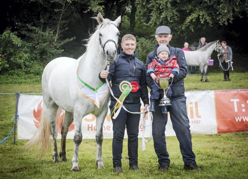 Junior Champion at Oughterard Show was the two-year-old filly Glencarrig Honeysuckle with owner Patrick Curran, his father Ciaran Curran, and Ciaran's grandson Paidi Geoghegan \ Rynes Walker