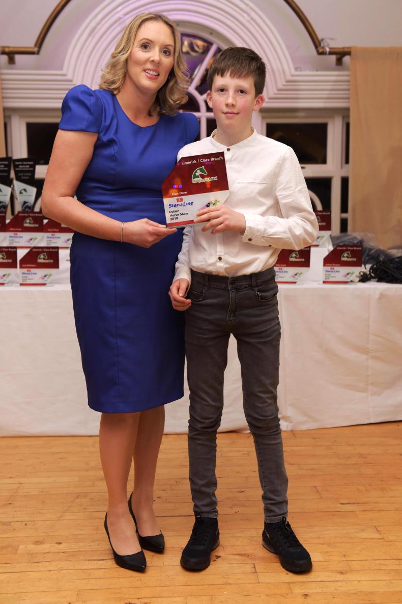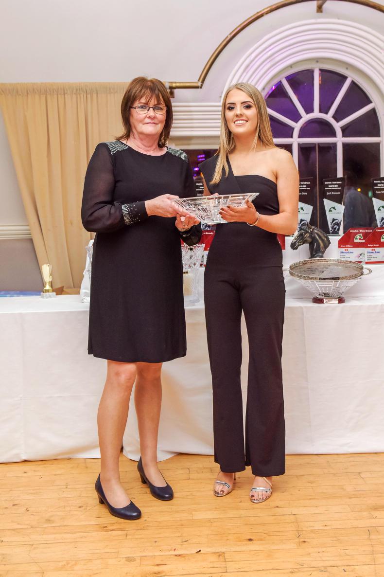 Carmel King presents Robyn Moran with the Branch Leading Young Rider award at the Limerick/Clare show jumping awards evening \ JC Photography