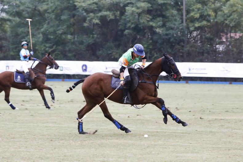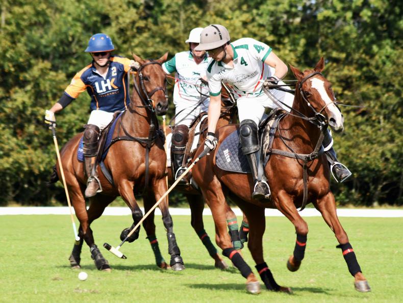 The going was tough for Ireland’s team captain Caroline Keeling, Dan Laverty, Colm Kelleher and Michael Connolly and for Andrew Rivkin, team captain for Canada along with Evan White Jnr, Mitch Ward and Kingsley Ward Jnr - the portion of the Nine Acres where polo is played each summer already requiring a dose of care and attention even before the storm hit.