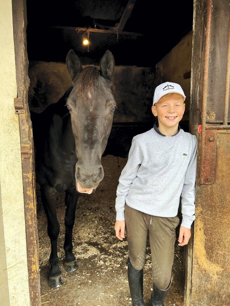 Cathal, who rides two ponies before school, pictured with Ruby Brown, owned by Bob Sweeney