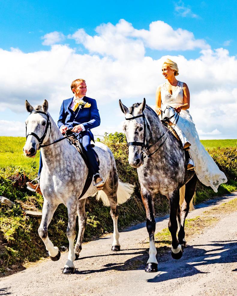 While Ciaran is a keen trotting fan and regularly competes at Portmarnock, the driving was left to Annie’s father Sean on the wedding day. Sean, who bred the Cheltenham winner Fissure Seal, drove Annie to St Fachtnas Church in Rosscarberry with the help of Burgatia Lad. The Grade A is one of many produced by the Prendergast family, with other top ponies including Skibbereen Girl, Summerhill Toby Jug and Donowen, which all represented Ireland with Robert and Esib Power.