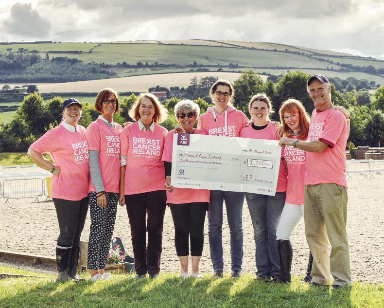 WELL done to one and all who helped, in any way, to raise €1,200 for Breast Cancer Ireland at the South East Region Classic held at Spruce Lodge last weekend. Pictured at the Spruce Lodge Classic, with a cheque for €1,200 in support of Breast Cancer Ireland, are: (l to r) Joanne O’Hagan, Gerd Liekens, Jane McGarrell Groves, Lynne Cassidy, Naomi Shairp, Kate Kerr Horan, Collette Ward and Ray Cox