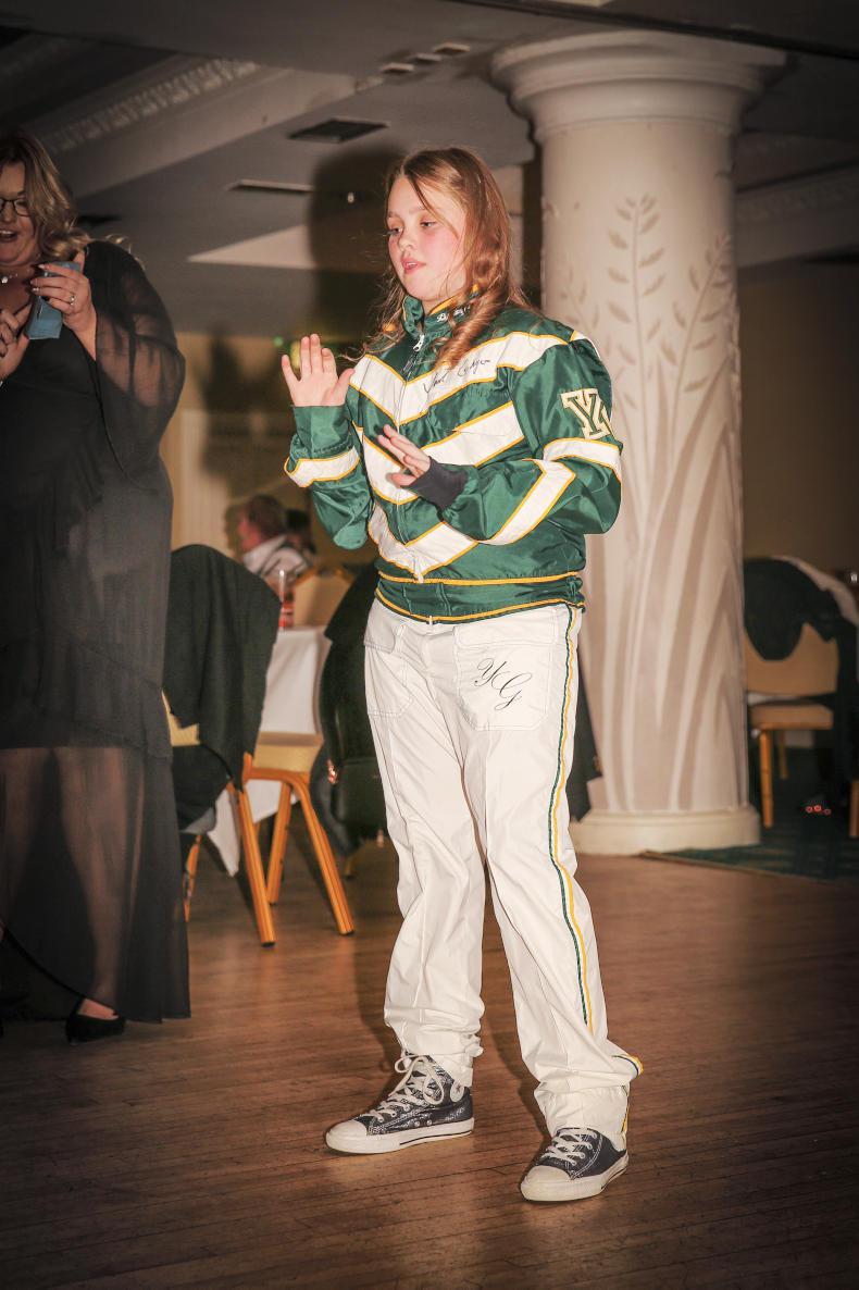 Five of the younger brigade in harness racing were presented with Special Appreciation Awards at last Saturday night’s annual Standardbred Harness Racing of Ireland awards dinner in the Sands Hotel which is just up the road from the country’s main track, Portmarnock Raceway. Four of the quintet comprised Fermanagh’s Luke Burns (15), who does a lot of the home work with the season’s leading trotter Epsom de Corvees; Adam Corey (12), who screams himself hoarse whenever his family’s Fantastic Western is in action; Emma Roche (13) who keeps her father Billy’s Urbano des Selles sweet and saw him win in both attelé (yoked to a sulky) and monté (under saddle) this year; and Calvin Broughan (15) who is apprentice driver at Ger Kane’s Mooreside Stud.