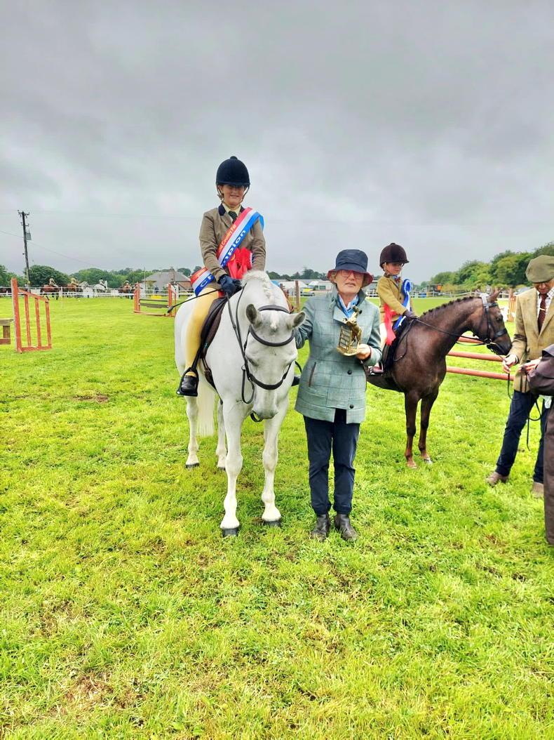 Grey skies didn’t dampen the delight of Charlotte who rode Connemara pony Colemanstown Fred to wins in both the one-metre working hunter pony class and the Connemara working hunter class before wrapping up with the championships. Family and friends were there for the occasion and it was a happy crew that made their way home afterwards. Charlotte, a regular on the show circuit, was thrilled to scoop the championships honours.