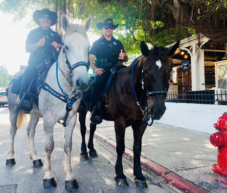 MURPHY is the most popular surname in Ireland and amongst the Irish abroad, but it was still unusual for The Irish Field correspondent Susan Finnerty to find a four-legged Murphy in Key West, Florida, while on a visit there last week. Taking a break from Thanksgiving festivities with family and soaking up the enviable sun, Susan met the Key West Police Mounted Patrol unit, who numbers Murphy, the grey on the left, amongst its horses. He was spotted out on the streets with Officer Santiago Perez, accompanied by Officer Michael Wolf and Mila.
