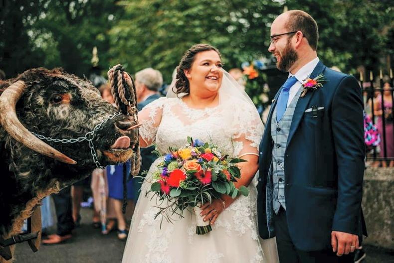 Caroline is a daughter of leading Northern young show horse producer Davy Lyons, and his wife Gillian, and it was at their home in Ballynahinch that the reception took place following a photographic session at the Butterfly House in Seaforde. “The reception was in the sheds and the whole wedding was all very country!” said Caroline.