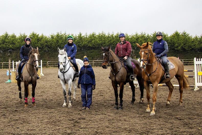 This was Mary’s first visit to Northern Ireland since riding at Necarne in the early 90s. Tara and Karen Dixon had the idea to invite Mary over to stay so they could organise the clinic, kindly hosted by Michael Dobbs and Leah Knight. The massive outdoor arena had a full set of show jumps and numerous cross-country fences, making it the perfect training ground. Five full groups enjoyed an hour and a half each of Mary’s expertise and knowledge, helping them progress and develop. Not only was it beneficial for the riders, but also a few people came along to watch and learn.