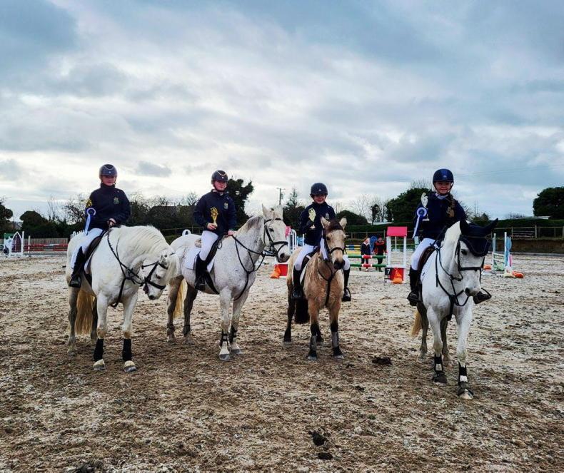 Victory was claimed after a two-school jump-off by the Newbridge College team of Mountain Girl and Bobby Weld, Lady Ace ridden by Eve Holohan, Little Miss Sunshine and Deryn Ryan, and Lollie O’Neill riding Blackjack when they posted the fastest time against the clock, ahead of St Mary’s New Ross.
