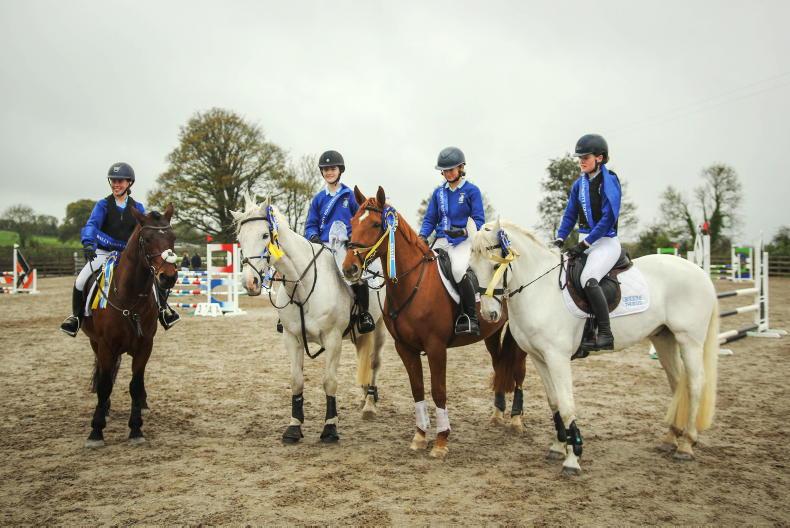 The TRI Equestrian open team event was won in fine style by Ursuline Secondary Schools Thurles. Evie Kennedy on Max Jumping Joy, Charlotte Roe riding Silver Grog, Emily Gleason on Illaunarra Luska and Katie Coonan with Hilltown Quality Cruise made up the Ursuline team.
