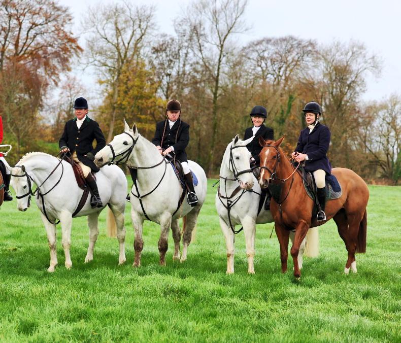 Visiting from Virgina at the opening meet of the Limerick Foxhounds in Bruff was Tom Schrek MFH, Jeff LeHew MFH, Nina McKee and Jo Aston \ Catherine Power
