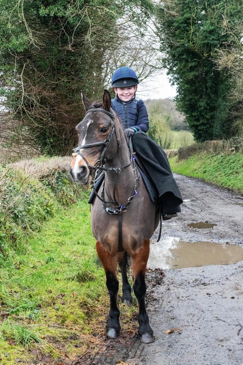 Sophie Mara takes on a a wide ditch on her great cob out with the Muskerry Foxhounds \ Catherine Power
