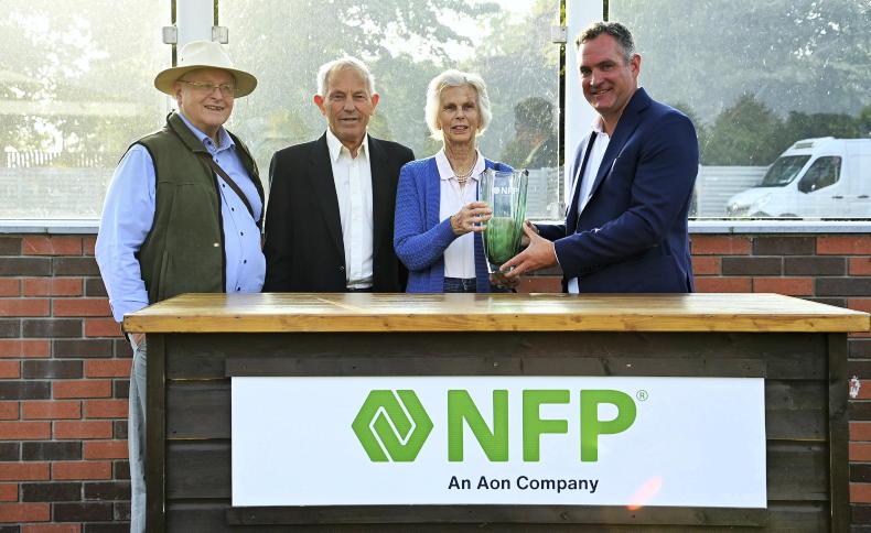 Former Olympian Tony Cameron (left) put in a surprise appearance at Cork Racecourse on Thursday evening. He is pictured here with (l-r) Ned Keys, Dowager Countess of Harrington, and race sponsor John Barrett following the success of Super Sox in the NFP Irish EBF Platinum Stakes.