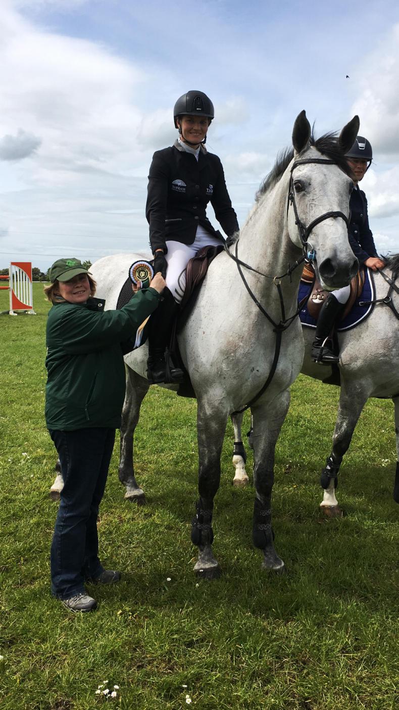 Jessica Burke and Kashino won the seven-year-old final of the ISH Studbook Series at Galway Equestrian Charity Show, pictured here with Horse Sport Ireland's Alison Corbally (Photo: Horse Sport Ireland)